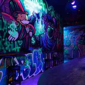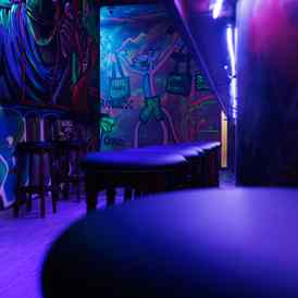 Интерьер бара выдержан в лофт-стиле: кирпичные стены, металлические конструкции, мягкий свет и сочетание индустриальных деталей создают современное и атмосферное пространство. Внутри предусмотрены зоны для общения, отдыха и танцев, что позволяет гостям выбирать удобный формат вечера. Лофт-эстетика гармонирует с динамичным характером бара и подчёркивает его особую энергетику — стильную, свободную и созданную для ярких событий.